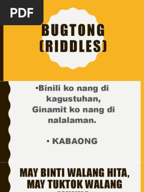 Kalendaryo Bugtong kong sapin sapin Nakasabit nakabitin Araw araw kung bilangin Isang taon kung tapusin. Sagot Sa Bugtong Na Isang Butil Ng Palay Sakop Ang Buong Bahay ISANG BUTIL NG PALAY Ang mga bugtong ay isang matandang laro na sumusubok sa ating mga utak. Tubo Bugtong 1007 Tagapaghatid ng inuming tubig Bakal na lalagyang kaibig-ibig.