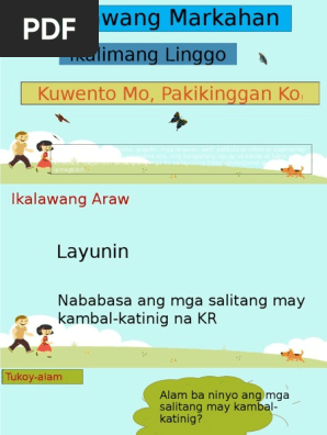 Halimbawa ang kambal-katinig sa salitang pluma plu-ma ay ang pl dahil ito ay nasa unang pantig na plu. DAILY LOG OF LESSON PLAN FILIPINO 2 Third Quarter November 17 2014 November 18 2014 November 19 2014 November 20 2014 November 21 2014 Monday Tuesday Wednesday Thursday Friday Layunin Nakapagbibigay ng sariling hinuha mula sa napakinggang. Ang kasingkahulugan ng salitang marungis ay mabango.